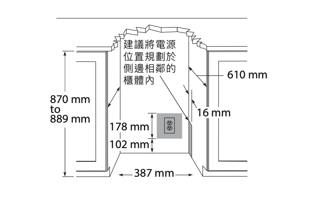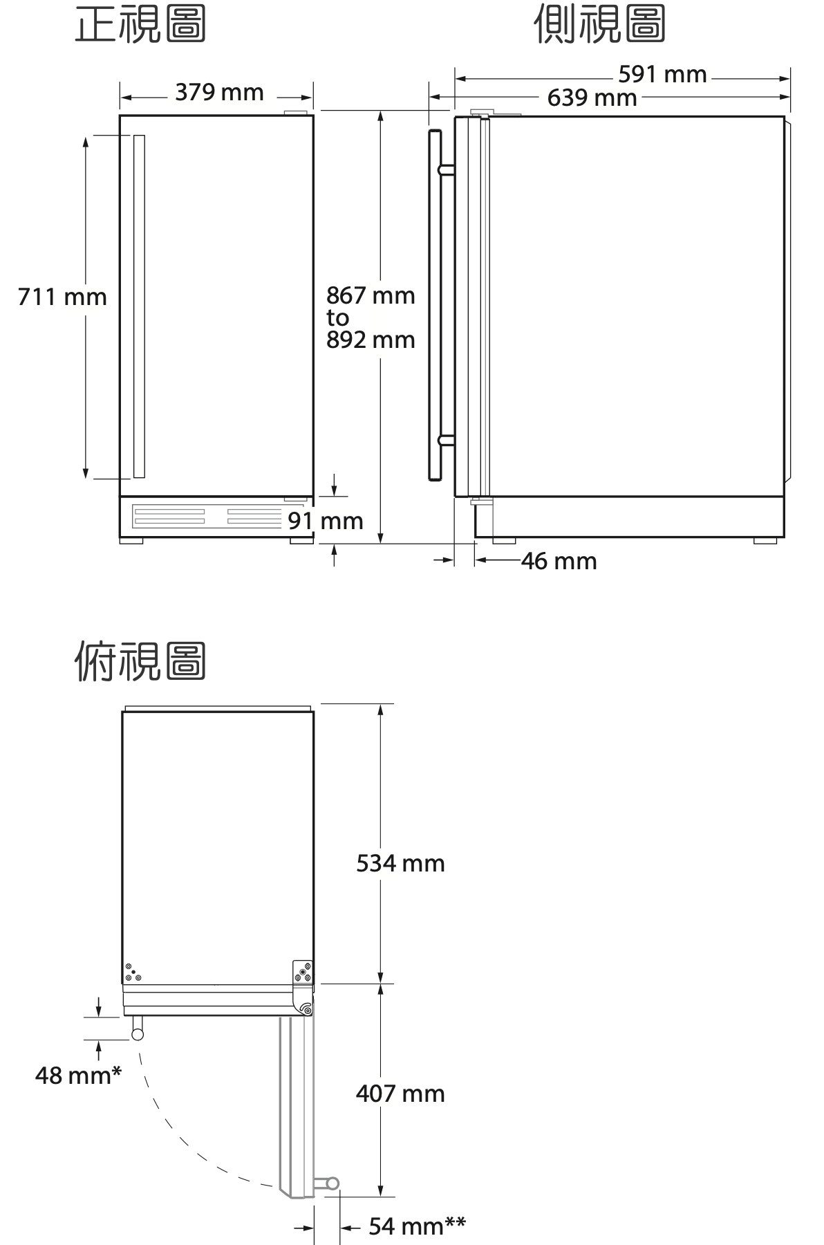 下圖尺寸適用於各式UHCR115機型,包括自訂門片機種。
